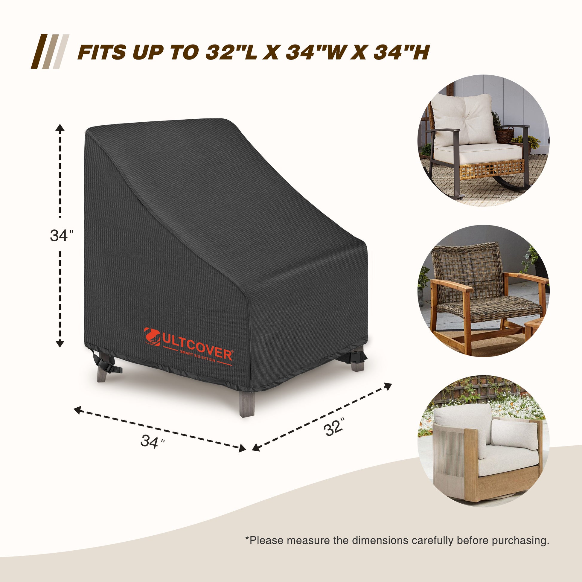 ULTCOVER Smart Selection 32"x34" Patio Chair Covers 2 pack Heavy Duty 600D PVC Oxford Outdoor Chair Cover Waterproof Dustproof UV & Tear Resistant