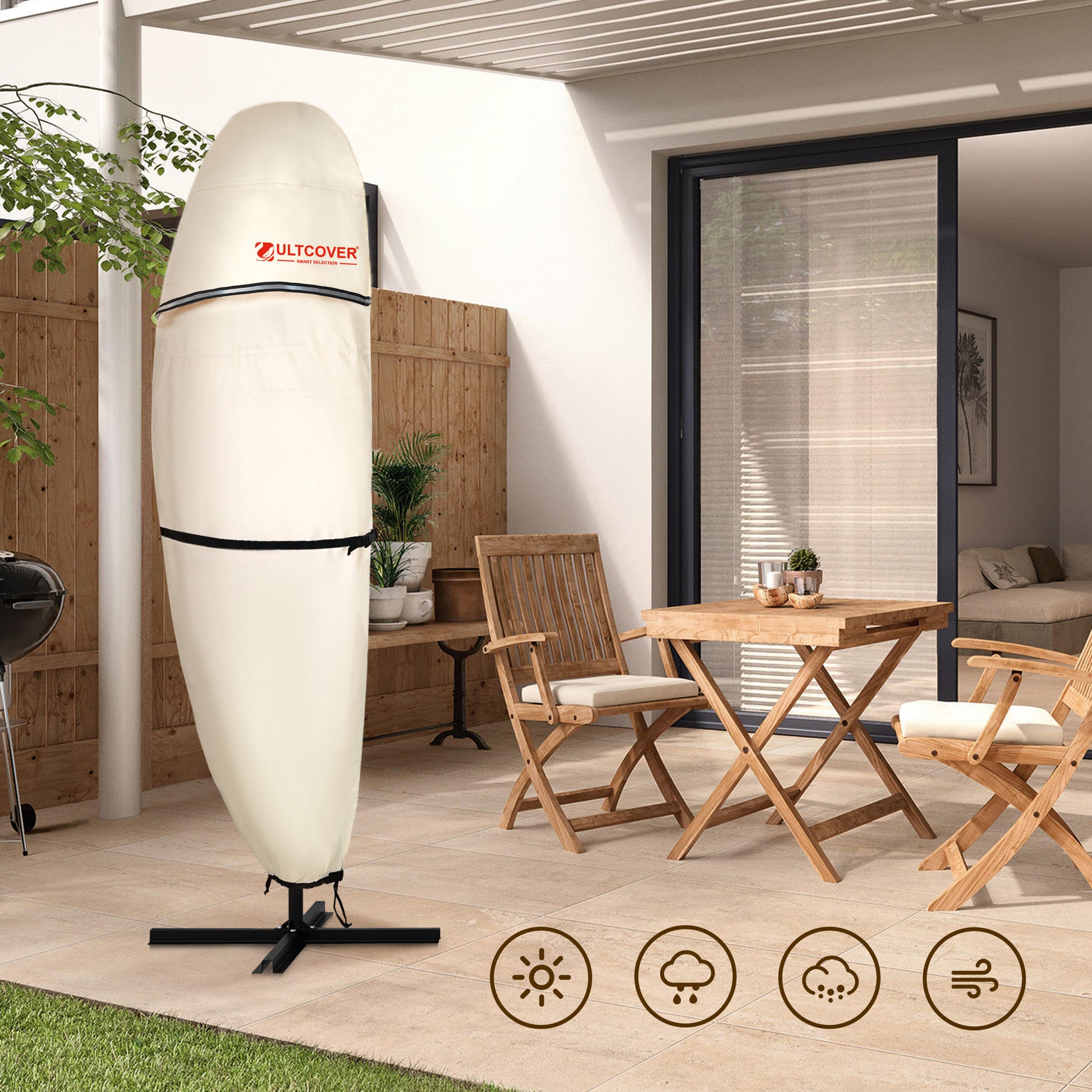 ULTCOVER Smart Selection Patio Umbrella Cover Heavy Duty 600D PVC Oxford Waterproof Sun & Tear Resistant - Fits Cantilever Offset Umbrella 12-14 feet