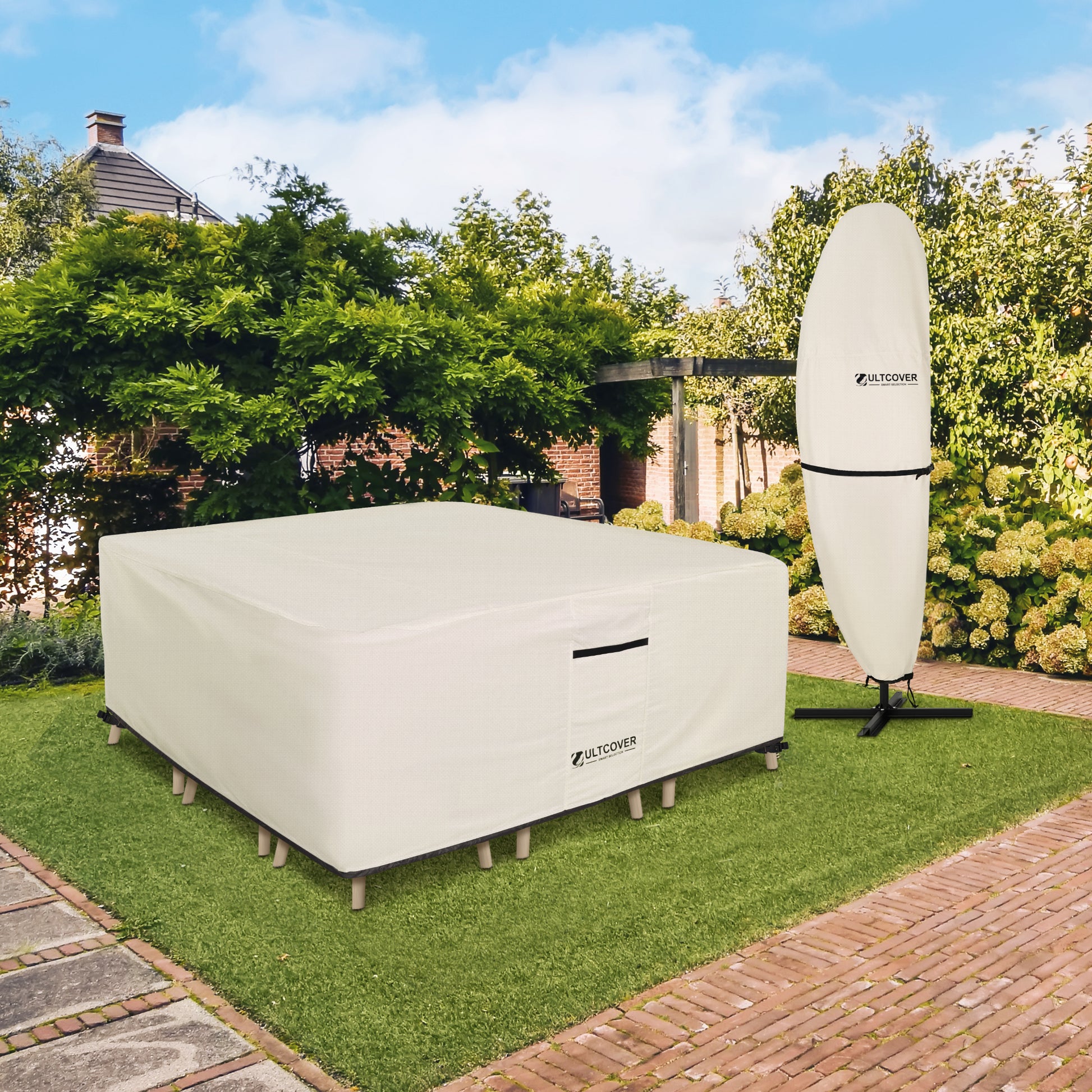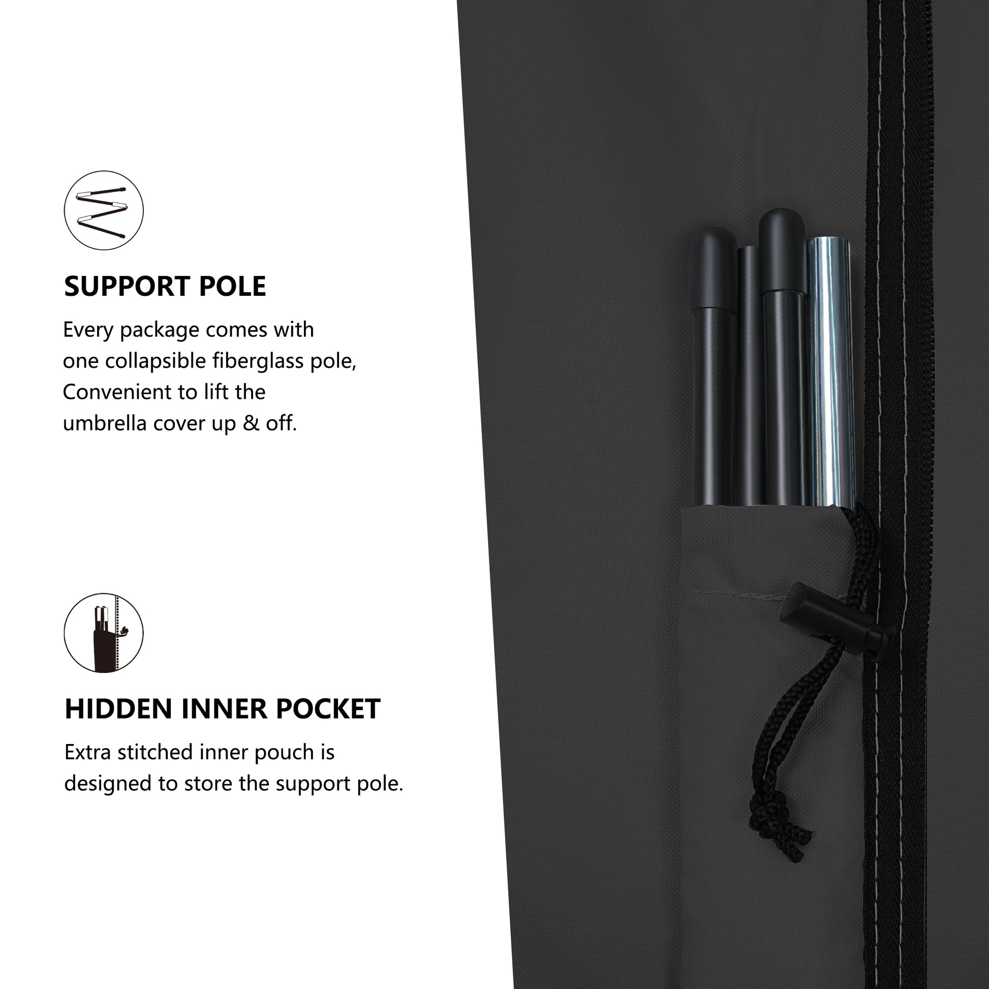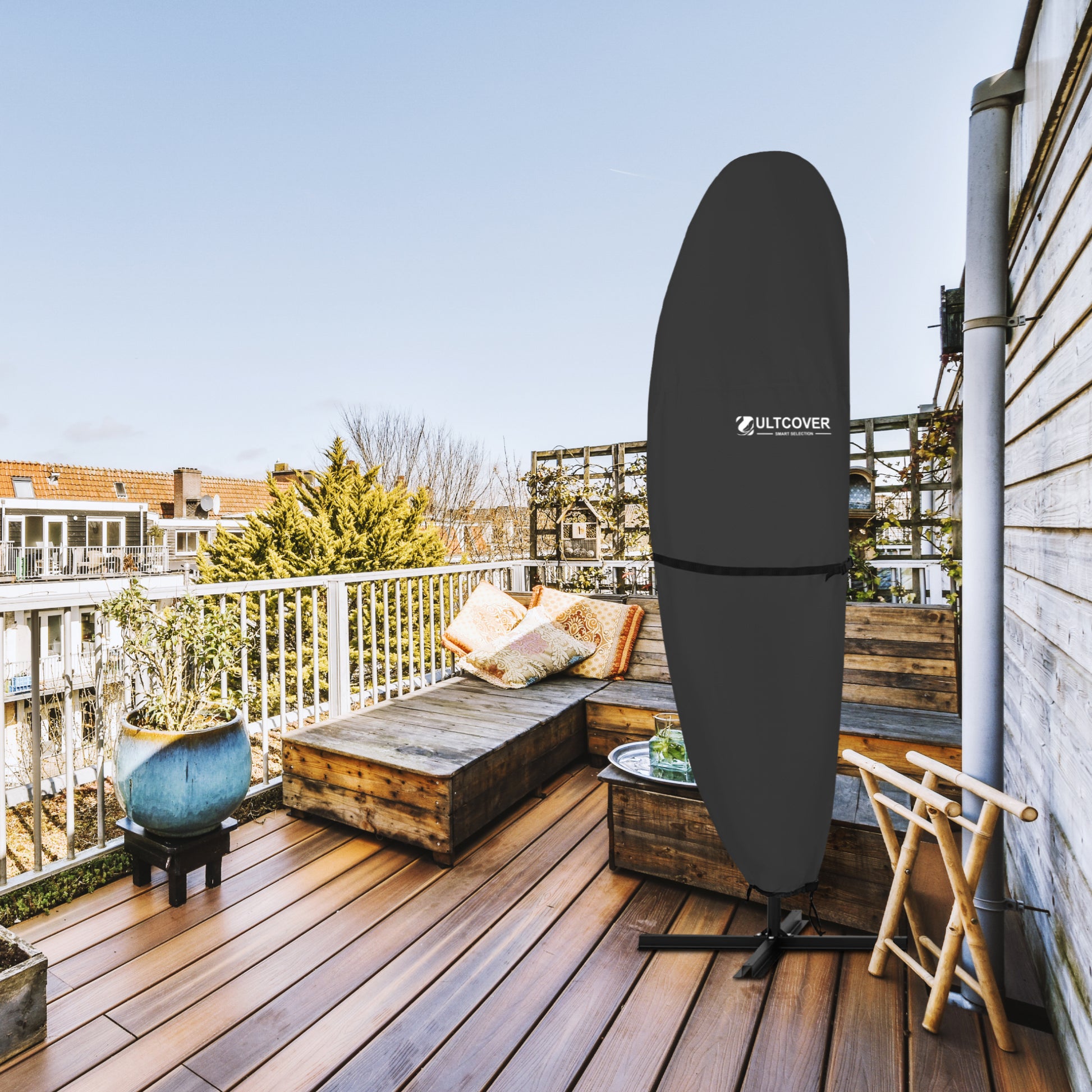 ULTCOVER Smart Selection Patio Umbrella Cover 7.5'-11.5' Fits Cantilever Offset Umbrella 420D Waterproof Dustproof Banana Style with Support Rods